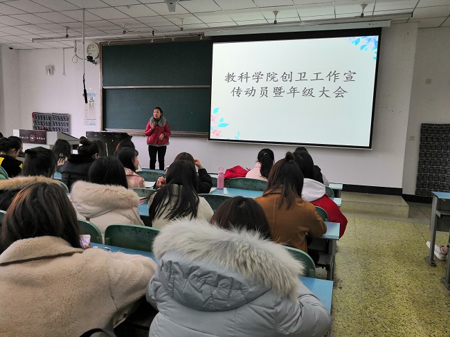 本网讯(文、图/罗祺平)教育科学学院为积极响应学校“创卫”工作要求,认真贯彻落实《乐山师范学院创建国家级卫生城市工作方案(三年工作规划)》方案,3月13日—18日通过开展全院年级大会、各班班会等宣讲活动,对学生进行劳动教育。要求每一位学生积极行动,人人参与,营造一个文明守信的生态环境;倡导在创卫中提升自我健康卫生水平;在劳动锻炼中提升自我责任心与意志力,争取德智体美劳全面发展。