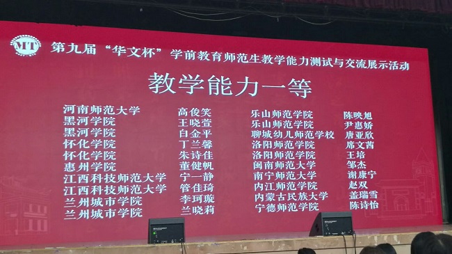教科学子在第九届“华文杯”学前教育师范生教学能力测试中获奖