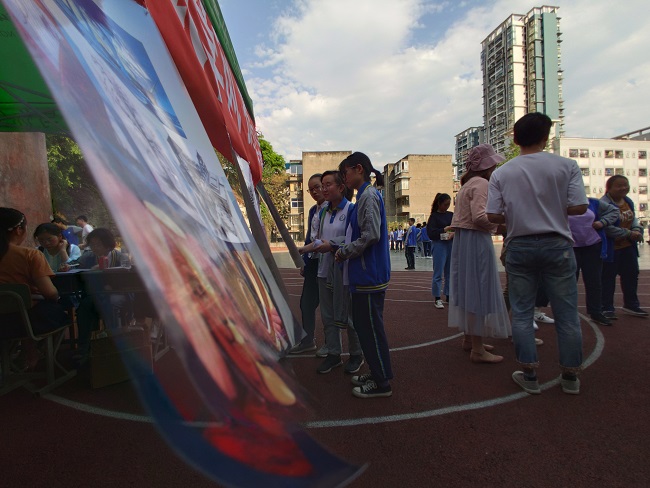 2019年4月8日下午16:30,乐芽织心志愿者们来到草堂高中,开展心理志愿服务活动。这时,正是高一的同学们阳光体育课的时间,参加完体育活动后,同学们纷纷前来参与。