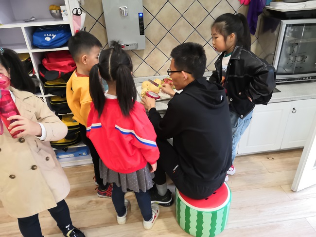 在实习中,学生们以两人为一组,分成各个小组到不同年龄的班级进行见习,每个人在实习中都收获了孩子们的笑容和知识经验的积累。在见习中,学生们既旁听了幼儿园开设的国学课、英语课等课程,也在自由活动中与孩子们进行游戏,同时帮助生活老师将孩子们的水果削皮。同学们不仅仅是观察者,也是参与者,在观察中参与,在参与中观察,记录下了孩子们最真实的表现。也让学生们将实践与理论相互验证,用实践证实理论,用理论指导实践。
