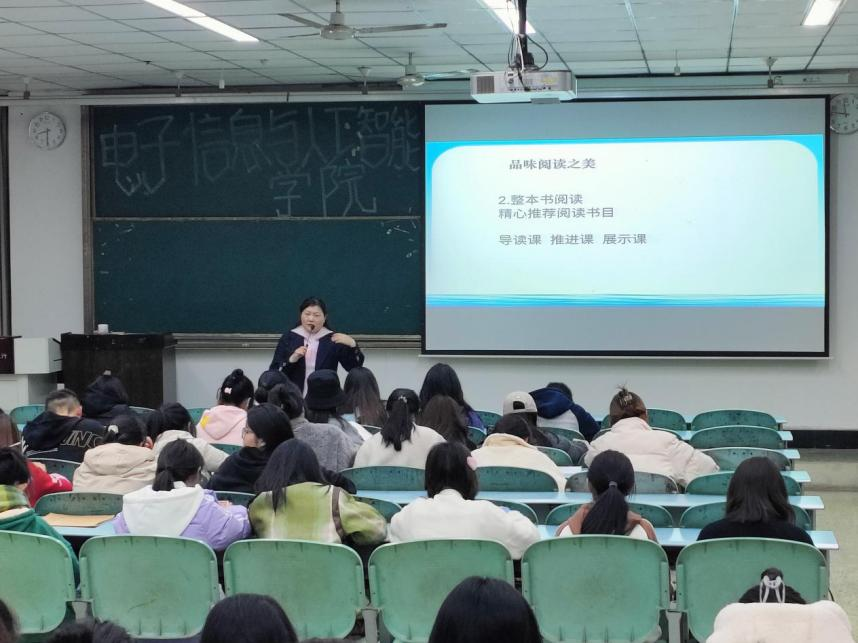 张平校长以自身成长经历为例,分享了她作为一名小学语文教师的专业学习与发展之路。在分享中,张校长特别强调了三笔字、简笔画、普通话等专业技能对小学教师专业发展的重要性。专题讲座上,张平校长对同学们寄予厚望,鼓励同学们“如果将来想成为小学名师,一定要记住:保持谦卑之心,做一个永远的学习者”。希望同学们重视在校学习时光,珍惜教育实习机会,抓住机会借力发展,鼓励同学们多阅读、多创新,要有自身远大的理想。同时,张平校长还为同学们推荐了阅读书目,希望同学们能够有所收获。
