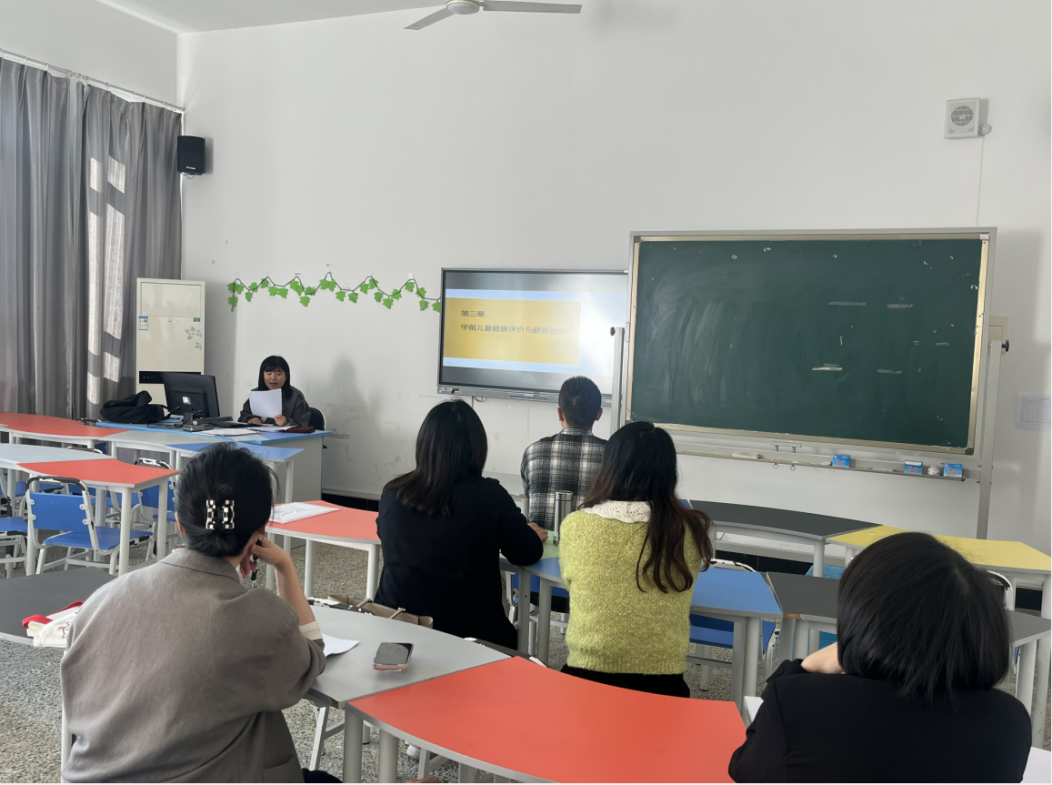 首先进行说课的是金春燕老师,说课的主要内容是“学前儿童健康评价与健康检查”,金老师从教学重点、教学难点出发,梳理了该项内容的核心知识点。随后由李非易老师进行说课,其主要内容为“幼儿园班级的安全管理”,李老师以该内容的学生实操练习为重点,归纳总结了该内容学生应重点发展的能力。接着苗芳芳老师就“幼儿园课程组织内容的选择与组织”为重点进行说课,以适宜的教学方法为依托,为各位老师厘清了该内容的重点环节。闵钰老师以“教育观察研究”为此次说课的主要内容。通过扎实的理论知识讲解,结合学生的作业点评,闵老师向各位老师展示此项课程内容的重点关节。随后田苗老师以“拜厄练习曲集”为主要说课内容,该项内容从《键盘基础》的技能连续性考虑来看,将着重培养学生对于“乐谱、键盘、指法”三位一体的配合弹奏能力。最后由余祥老师进行说课展示,其说课的主要内容为“幼儿教师专业标准”。余老师从现实视频案例入手,围绕四个重点环节,恰如其分地突破教学重难点。对于此次课堂教学专题教研活动各位老师收获颇丰,既深入地反思了自身的教学设计、教学方法等,又与系内各教师进行透切的专业交流。至此学前教育系首次课堂教学专题教研活动圆满结束。