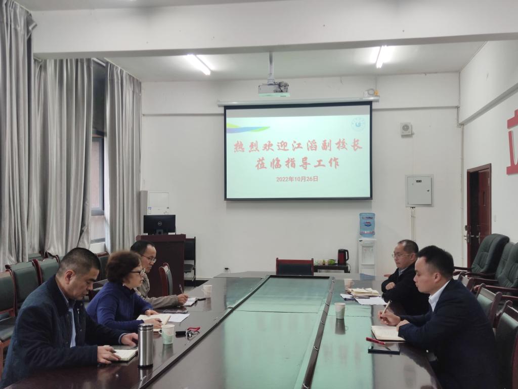 本网讯(文、图/巴玉宁)10月26日下午,学校党委常委、副校长江滔、科研部部长农向到教育科学学院进行调研并指导工作,教育科学学院党委书记罗立顺、院长汪红烨、副院长唐前军参加。