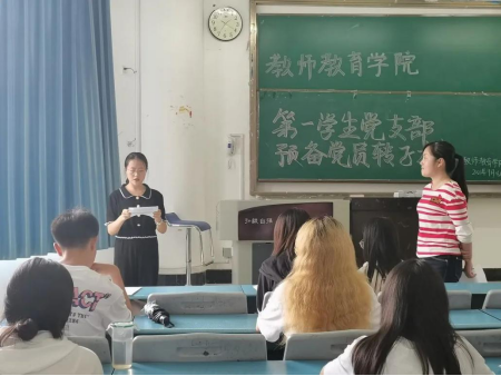 本网讯(文、图/党建中心)9月18日下午,教师教育学院第一学生党支部于行知楼314教室召开预备党员转正支部大会。参会人员有第一学生党支部书记翟雅媛,以及第一支部学生党员。