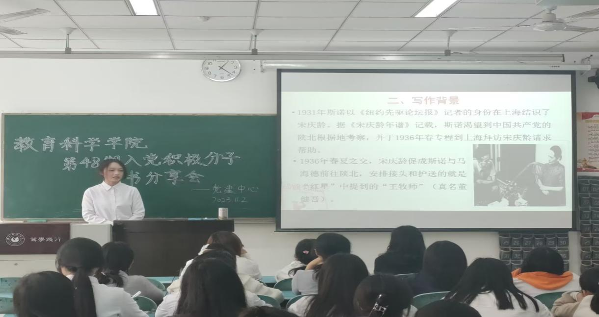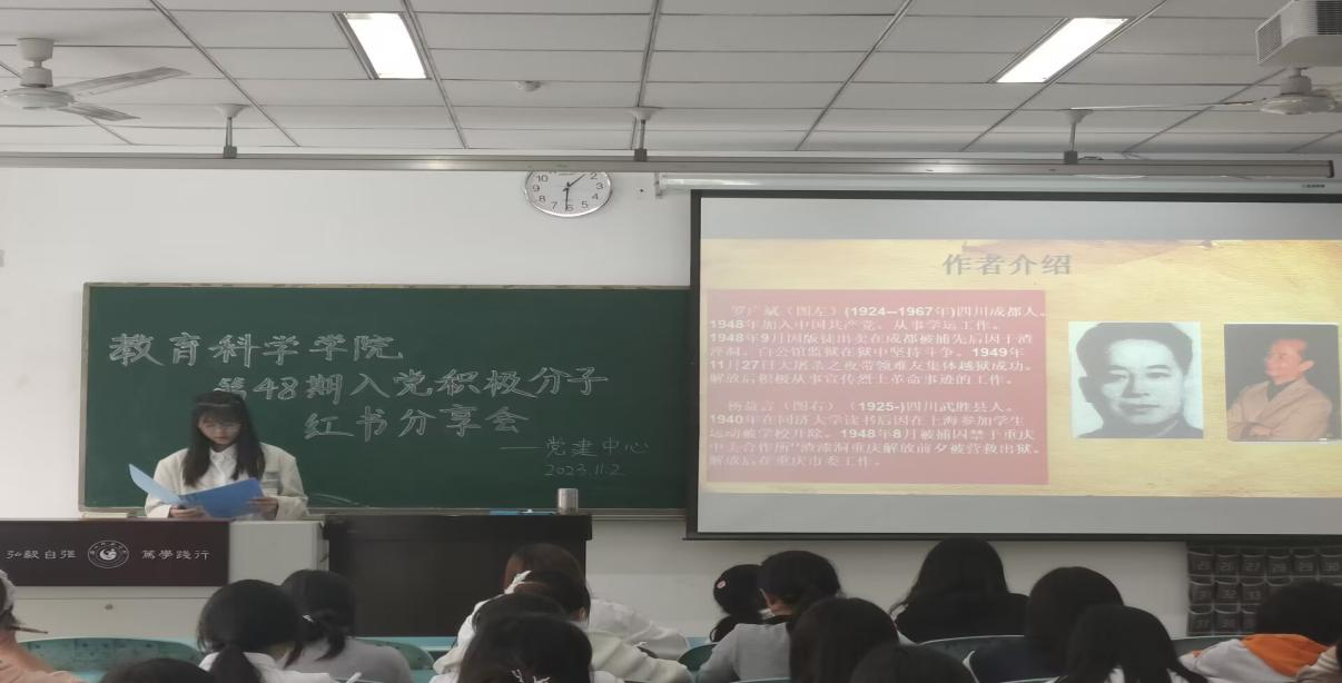 本网讯(文/罗陈钒 图/易冰冰)教育科学学院于11月2日下午在行知楼208举行了第48期入党积极分子红书分享会,第48期入党积极分子参与了本次活动。