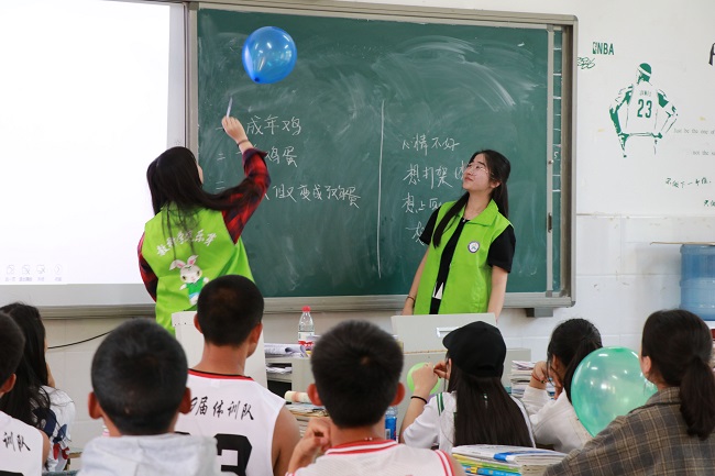本网讯:图/文 税光耀、顾星智)4月8日,“教科学院和马边中学结队帮扶的又一项新动向‘直面焦虑,斩取优绩’心理健康教育活动项目正式启动”,在学校副校长杜学元、我院党总支杨霞书记的带领下,心理学系教师邓雪薇、刘采梦、袁立方及30名“乐芽织心”志愿者在马边中学开展“直面焦虑,斩取优绩开始”心理健康周活动。