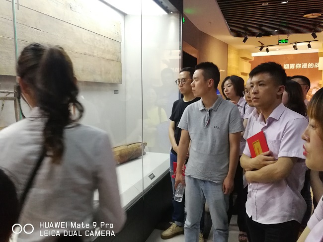 行车四个多小时到达泸定县后,大家顾不上休息就来到飞夺泸定桥纪念碑公园参观红军飞夺泸定桥纪念馆。走进纪念馆,大家一边认真听工作人员讲解,一边看那些安静地躺在玻璃橱窗中的古老文物。一张张照片、一件件文物、一幅幅书画,无不引起我们对历史的回顾和对革命先烈的无限缅怀,使我们心灵受到了极大震撼。