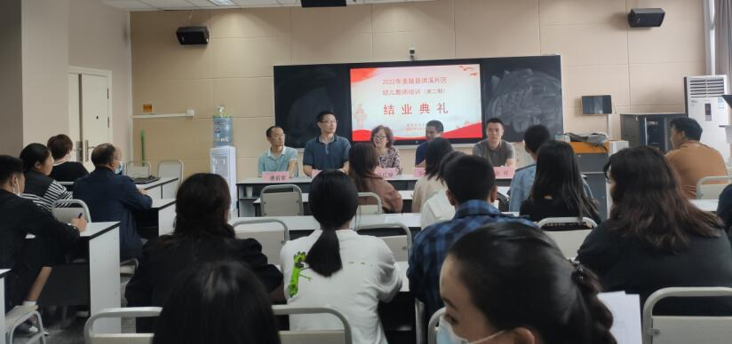 本网讯(图、文/张艳)5月31日上午,由教育科学学院承办的“2022年美姑县“一对一”精准帮扶项目———美姑县洪溪片区幼儿园教师培训(第二期)结业典礼在弘毅楼504B教室顺利举行。院长汪红烨、党委书记罗立顺、副院长徐世鼎、副院长唐前军、学前教育系主任余祥和来自四川省凉山彝族自治州美姑县的42名学员参加了此次结业典礼,此次典礼由徐世鼎主持。