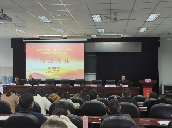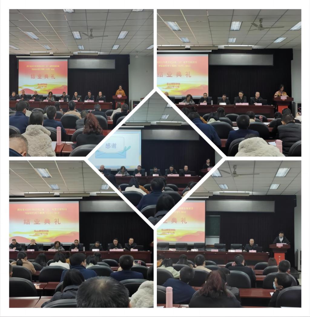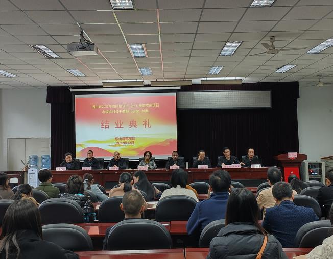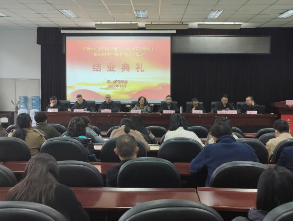 本网讯(文、图/张广云)12月1日上午,有乐山k8凯发承办的“四川省2022年教师培训市(州)统筹实施项目——农村骨干教师能力提升培训”线下结业典礼在弘毅楼413教室顺利进行。教育科学学院院长汪红烨,党委书记罗立顺,党委副书记和何晓军,副院长徐世鼎、唐前军及首席执行专家张广云、班主任孙来成、杨林和来自乐山市各区县的50名7年以上教龄的小学骨干教师参加了此次结业典礼,徐世鼎主持结业典礼。