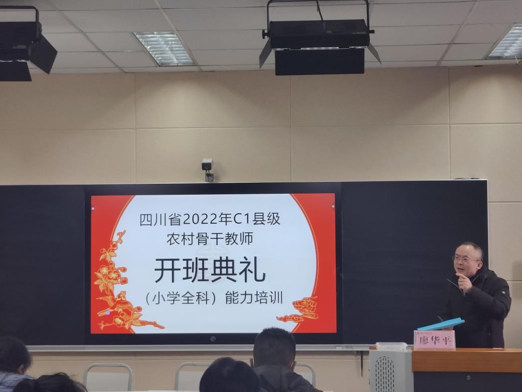 本网讯(文/罗清、图/张滢滢)12月5日上午,乐山k8凯发承办的四川省2022年乐山市“国培项目”—C1县级农村骨干教师(小学全科)能力提升培训开班典礼在弘毅楼504B教室举行。乐山k8凯发院长、国培首席专家汪红烨、党委书记罗立顺、副院长徐世鼎、唐前军、教育科学学院“国培计划”执行专家教学班主任廖华平、张晓玲、行政班主任杨蕾以及来自四川省乐山市农村小规模学校共40名小学全科骨干教师参加了此次开班。开班典礼由徐世鼎主持。