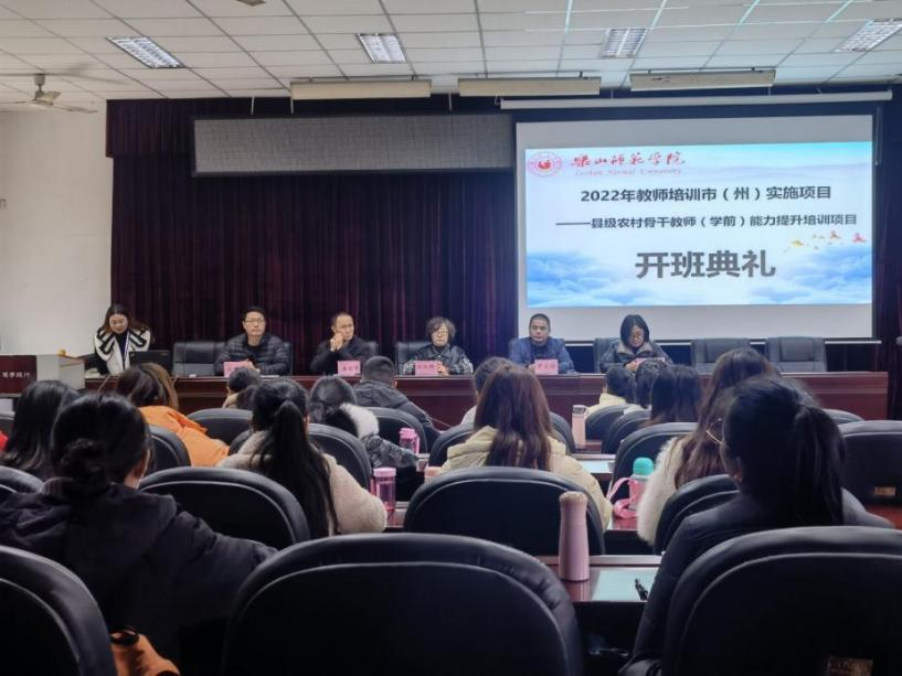本网讯(文、图/苗芳芳)12月5日上午,2022年“国培计划”——县级农村骨干教师(学前)能力提升培训开班典礼在乐山师范学院弘毅楼412教室举行。乐山k8凯发院长、国培首席专家汪红烨、党委书记罗立顺、副院长徐世鼎、唐前军、教育科学学院“国培计划”执行专家教学班主任苗芳芳、金春燕、行政班主任赵增华以及来自四川乡镇公办幼儿园的49名教师参加了此次开班,开班典礼由徐世鼎主持。