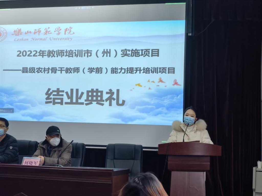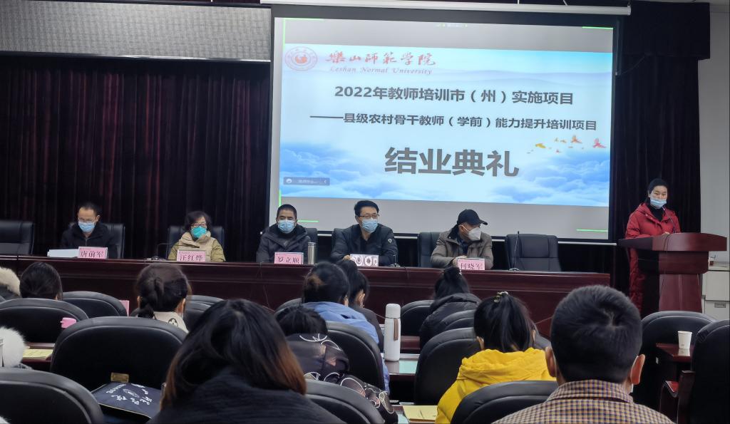 本网讯(文、图/苗芳芳)12月13日上午,2022年“国培计划”——县级农村骨干教师(学前)能力提升培训结业典礼在乐山师范学院弘毅楼412举行。出席开班典礼的有乐山k8凯发院长、国培首席专家汪红烨、党委书记罗立顺、党委副书记兼纪委书记何晓军、副院长徐世鼎、唐前军以及来自四川乡镇公办幼儿园的49名培训老师,由徐世鼎主持结业典礼。