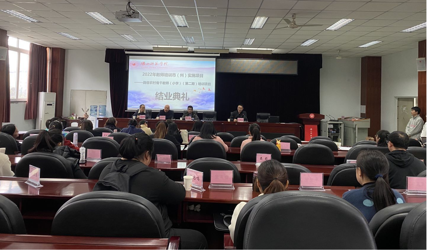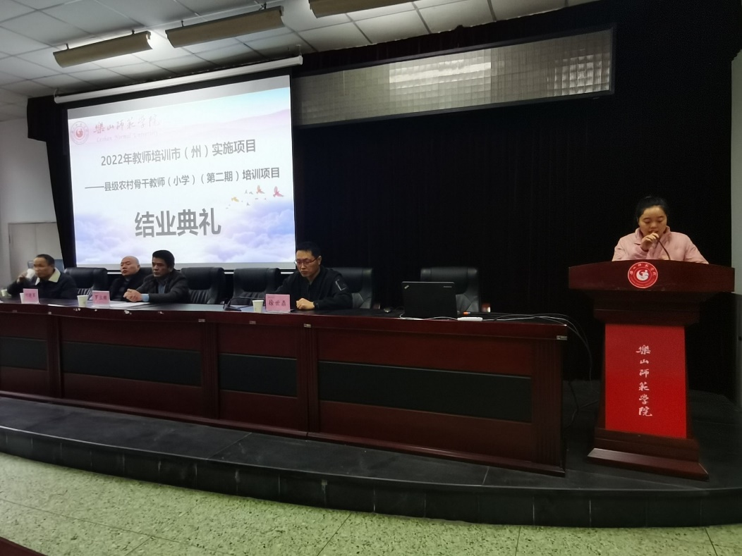本网讯(文/冯紫君、图/雷仕美、缑月娇、蒲绍东)3月28日,2022年“国培项目”市(州)实施项目——县级农村骨干小学教师培训(第二期)结业典礼在弘毅楼413教室顺利举行。乐山k8凯发党委书记罗立顺、党委副书记兼纪委书记何晓军、副院长徐世鼎、唐前军、教学班主任廖娅晖及47名学员参加了结业典礼。结业典礼由徐世鼎主持。