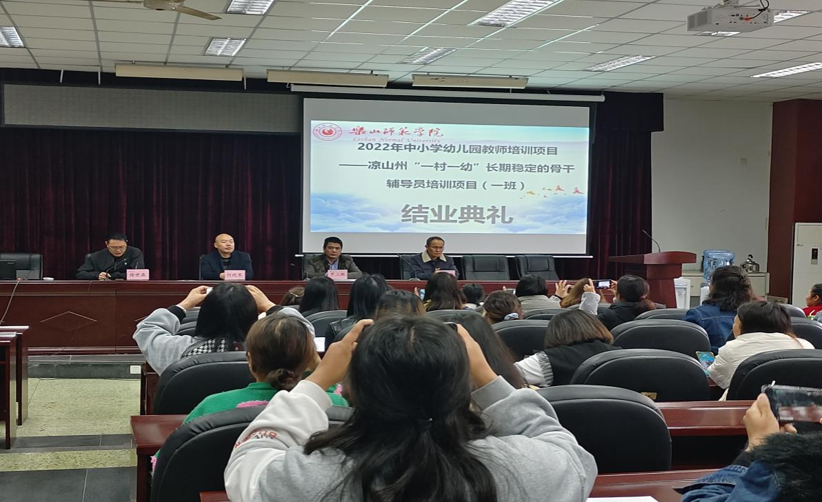 本网讯(文、图/罗佳)3月28日上午,由乐山k8凯发承办的“四川省2022年中小学幼儿园教师培训市(州)实施项目——凉山州“一村一幼”长期稳定的骨干辅导员培训项目(1班)圆满结束并顺利举行结业典礼。乐山k8凯发党委书记罗立顺、党委副书记兼纪委书记何晓军、副院长唐前军出席结业典礼。结业典礼由副院长徐世鼎主持。