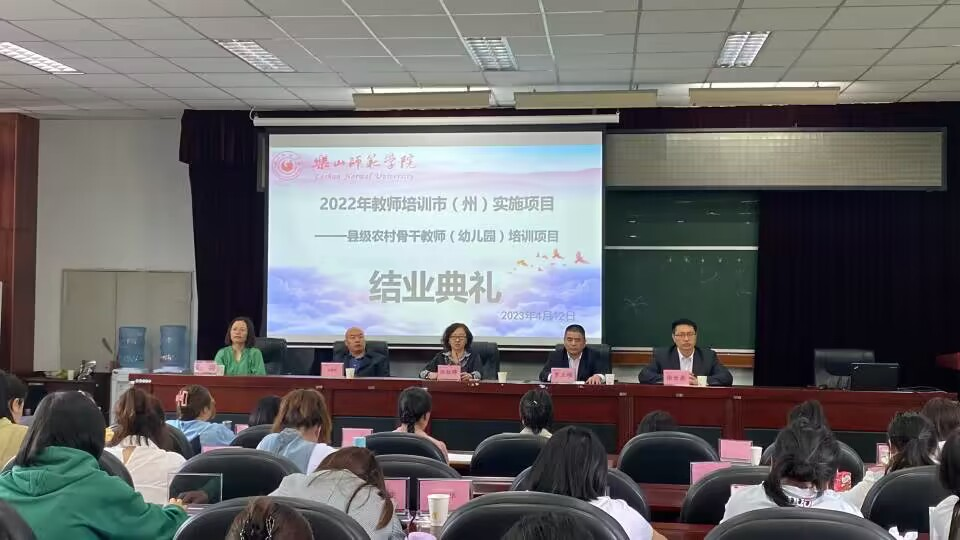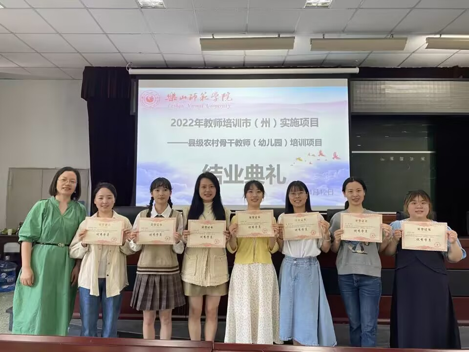 本网讯(文、图/王佳利、唐浩淇、游静姝)4月12日中午,由乐山k8凯发承办的四川省2022年中小学幼儿园教师培训市(州)实施项目——县级农村学前骨干教师培训结业典礼在弘毅楼413教室举行。乐山k8凯发院长汪红烨、党委书记罗立顺、党委副书记何晓军、副院长徐世鼎、培训班班主任刘涛以及50名培训学员共同参加了结业典礼。
