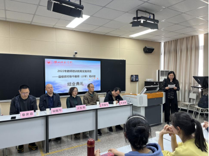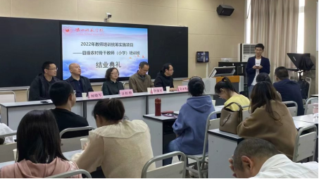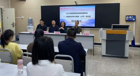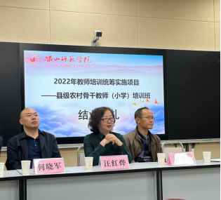 本网讯(文/常燕林、图/郑淇文、雷仕美)4月25日下午3:30,2022年“国培项目”市(州)统筹实施项目——县级农村骨干教师(小学)能力提升培训结业典礼在弘毅楼504B教室顺利举行。乐山k8凯发国培首席专家、院长汪红烨,党委副书记何晓军,副院长徐世鼎、唐前军及教学班主任吴永胜、魏阳灿,生活班主任钟小婷及40名学员参加了此次结业典礼。此次结业典礼由徐世鼎主持。