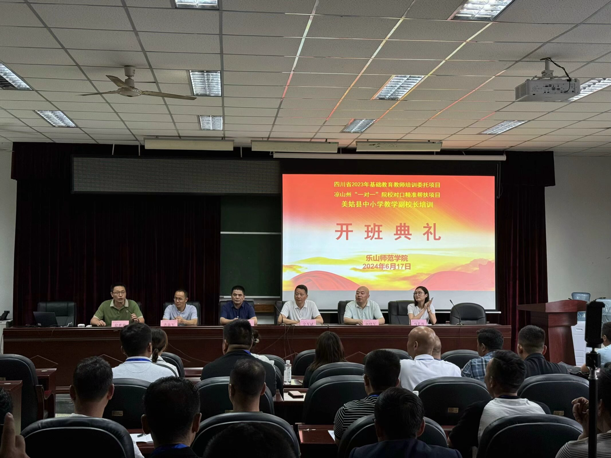 本网讯(文图/邓鹏)6月17日,由乐山k8凯发承办的“四川省 2023年基础教育教师培训委托项目凉山州“一对一”院校对口精准帮扶项目美姑县中小学教学副校长培训班”开班典礼在弘毅楼412教室顺利举行。学校党委常委、组织部部长、教育科学学院院长佘万斌,教育科学学院党委书记罗立顺,党委副书记、纪委书记何晓军,副院长唐前军、马艺丹,教师教育教研室主任张广云,学生工作办公室主任童瑶以及来自美姑县的46名学员参加了此次开班典礼。开班典礼由副院长徐世鼎主持。