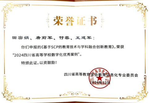会议期间,教育信息化专业委员会对“2024四川省高等学校数字化优秀案例”进行了现场颁奖。本次表彰,不仅是对我院教师的实践的认可,更是对我院工作的激励与鞭策。我院今后将不断总结经验,为数字化教育发展添砖加瓦。