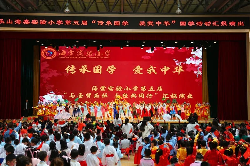 演出所带来的震撼不在心中泛起点点涟漪,而是激起琤琤巨浪。与圣贤为伍,与经典同行,走出海棠特色,走出海棠风采。