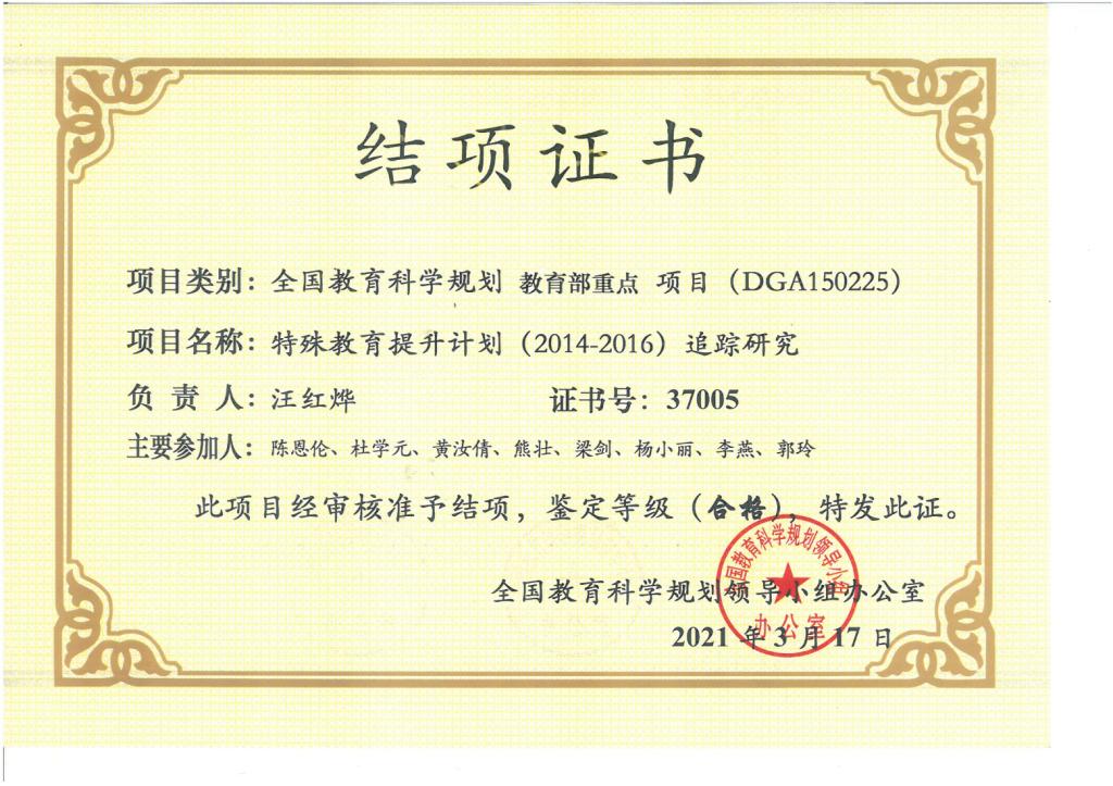 汪红烨1.全国教育科学规划领导小组结题证书-乐山k8凯发