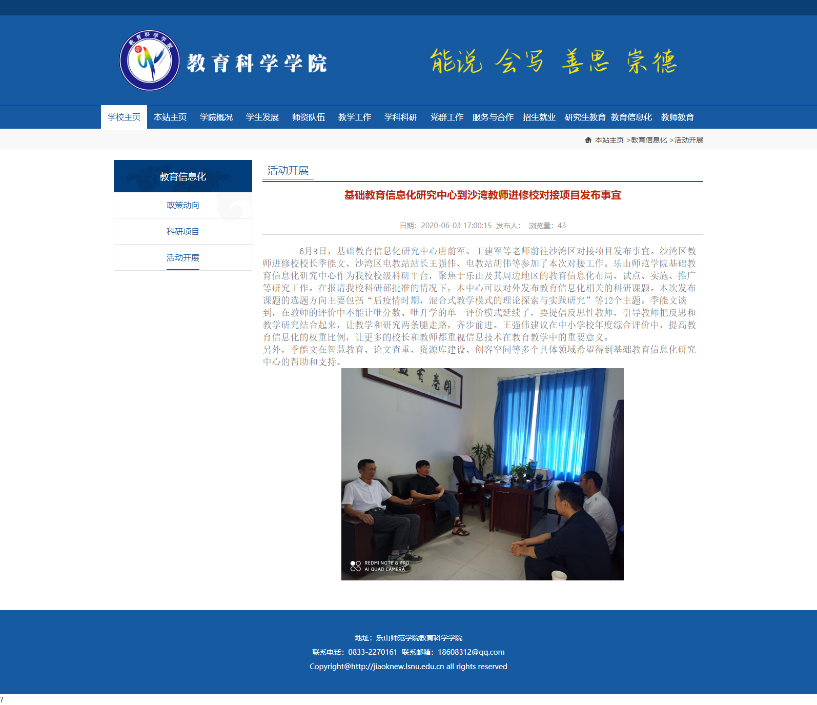 基础教育信息化研究中心到沙湾教师进修校对接项目发布事宜-乐山k8凯发
